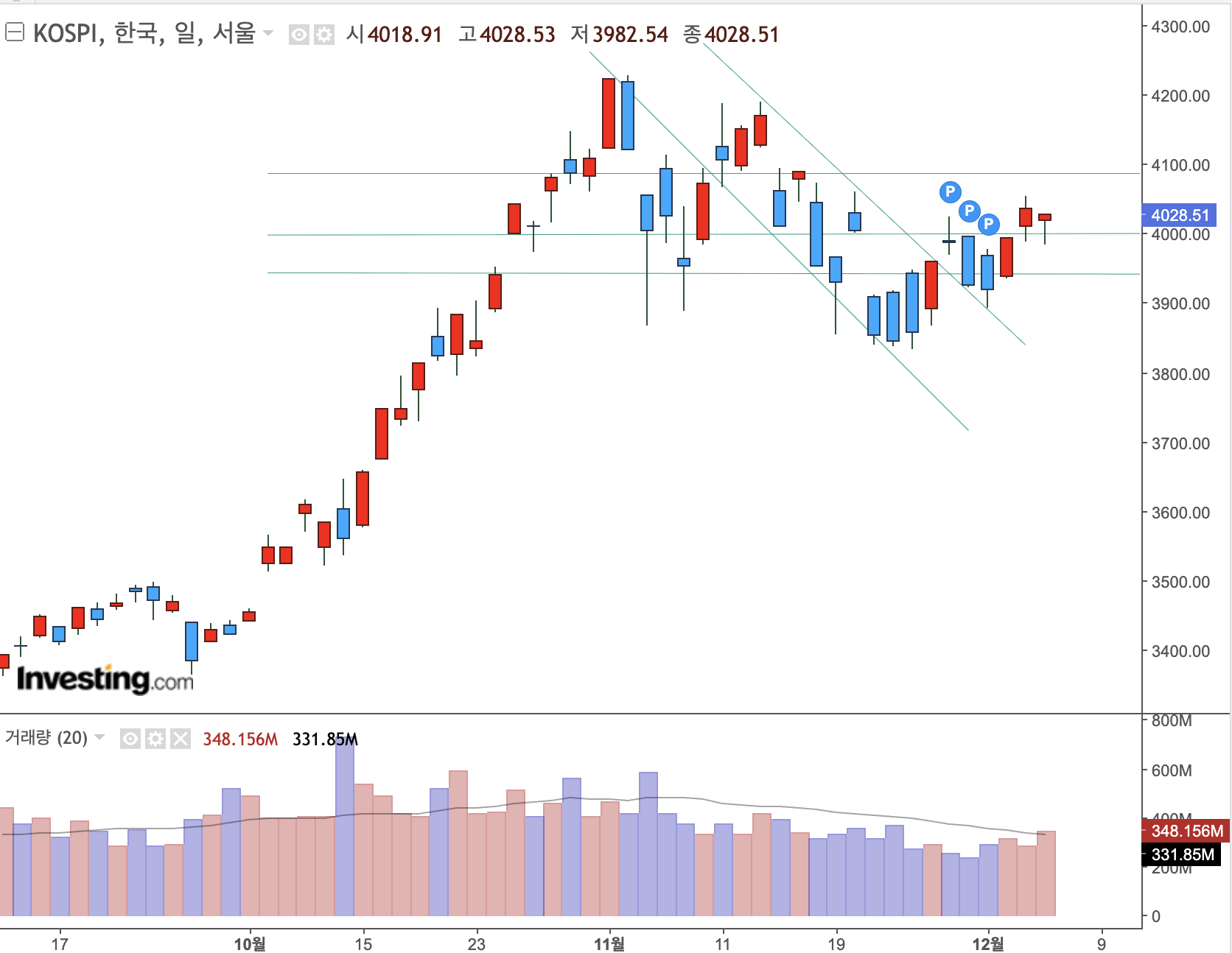 최근 코스피는 다시 4,000 포인트 돌파 후 횡보를 하고 있다.