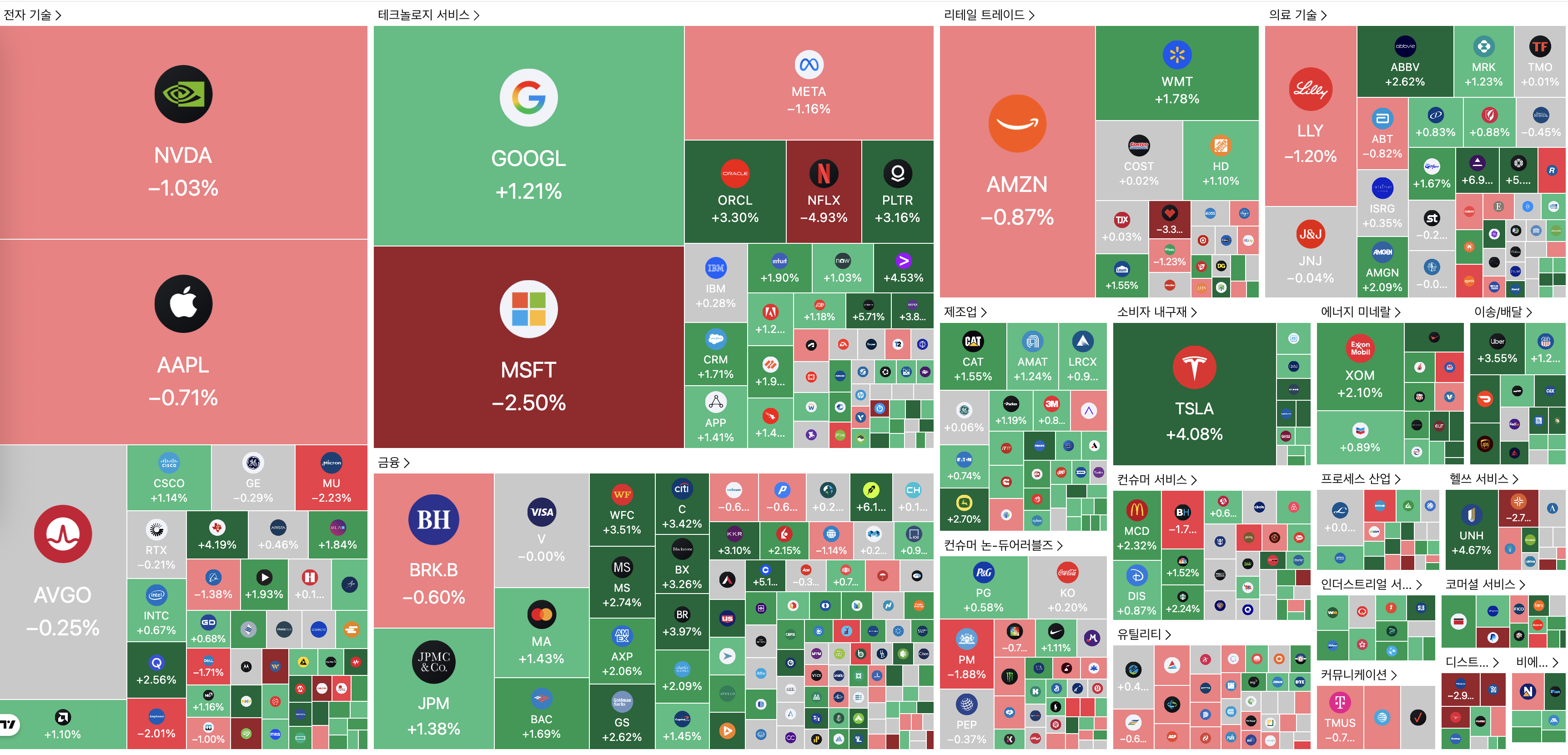 전체적으로 나스닥, 다우존스, 필라델피아 반도체지수, S&P500 모두 양봉으로 마감했다.