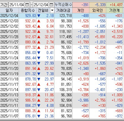 코스닥 거래 대금이 KRX 기준으로 12조, 통합 기준 14조를 돌파하며 유동성이 있는 흐름을 보여줬다.