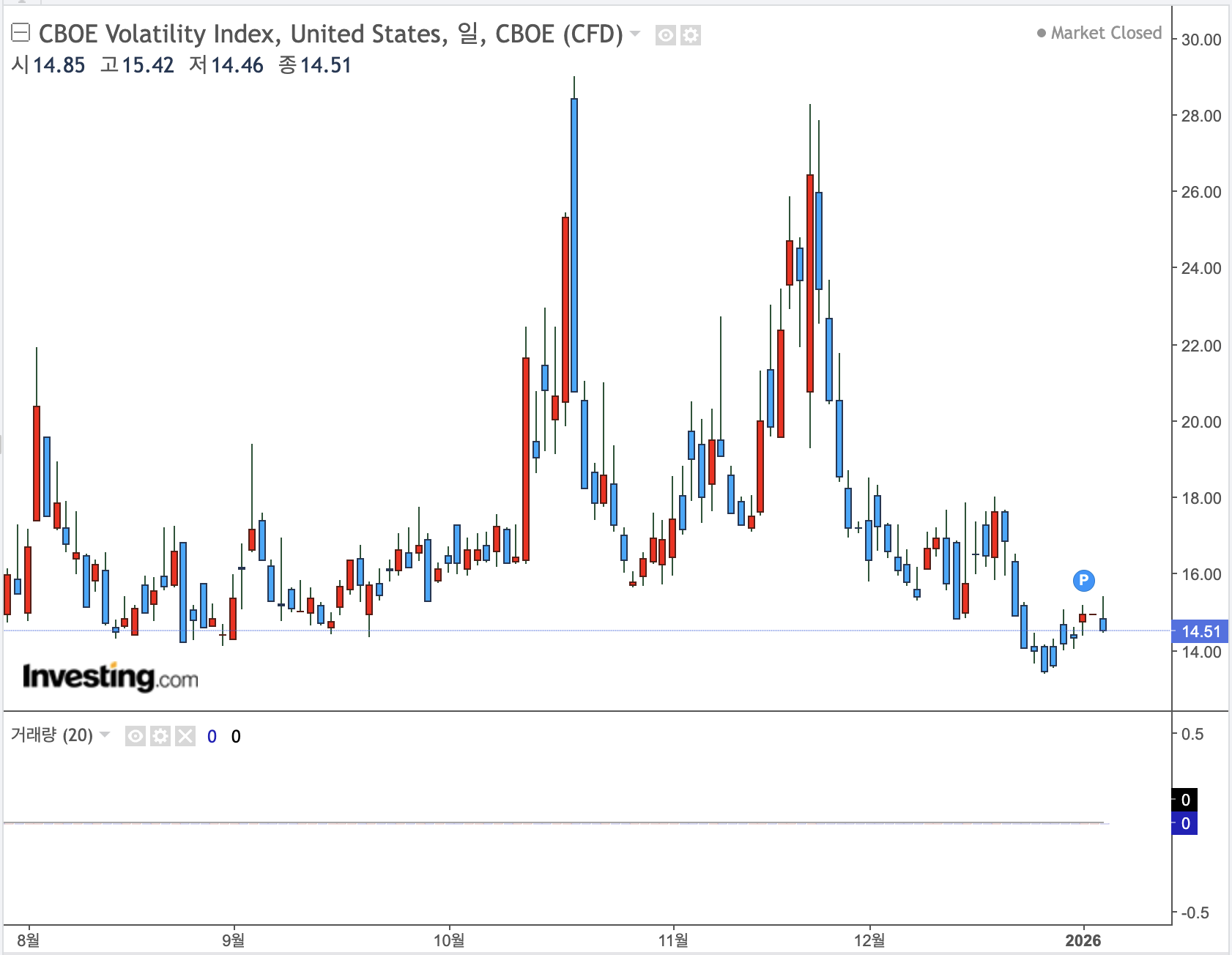 아직은 VIX 지수가 20 이하인 탐욕 구간