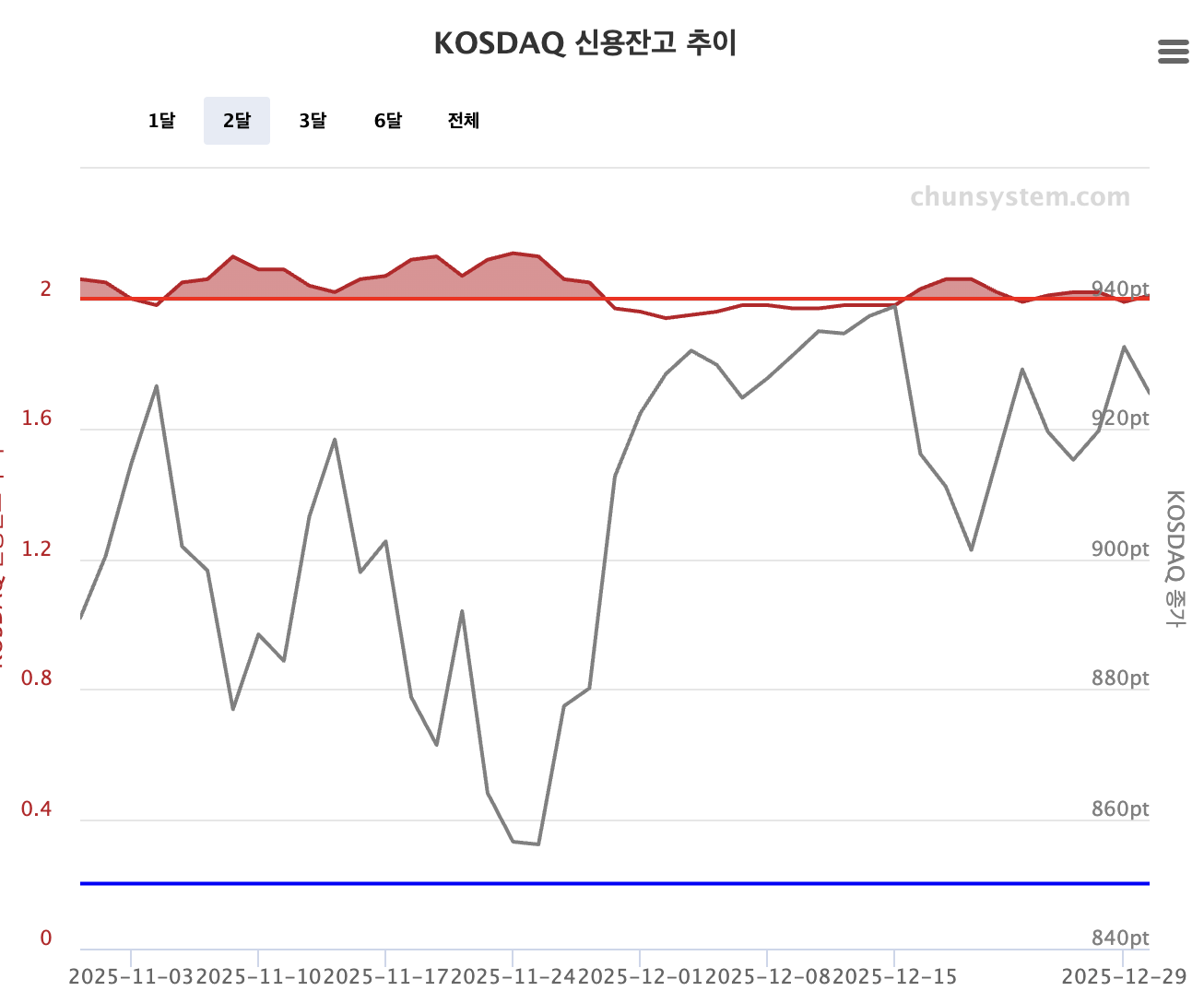 이격도가 벌어진 상태 유지