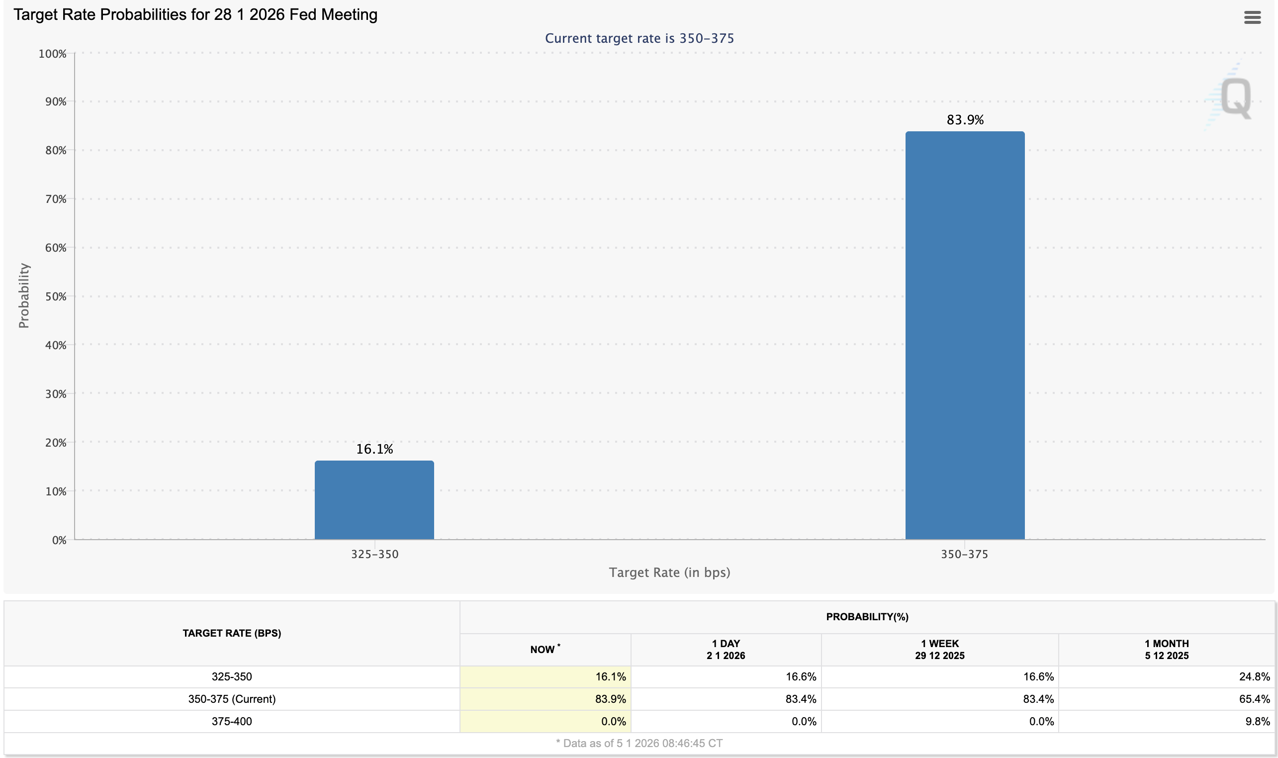 2026년 1월 28일 미국 금리 예상 비율