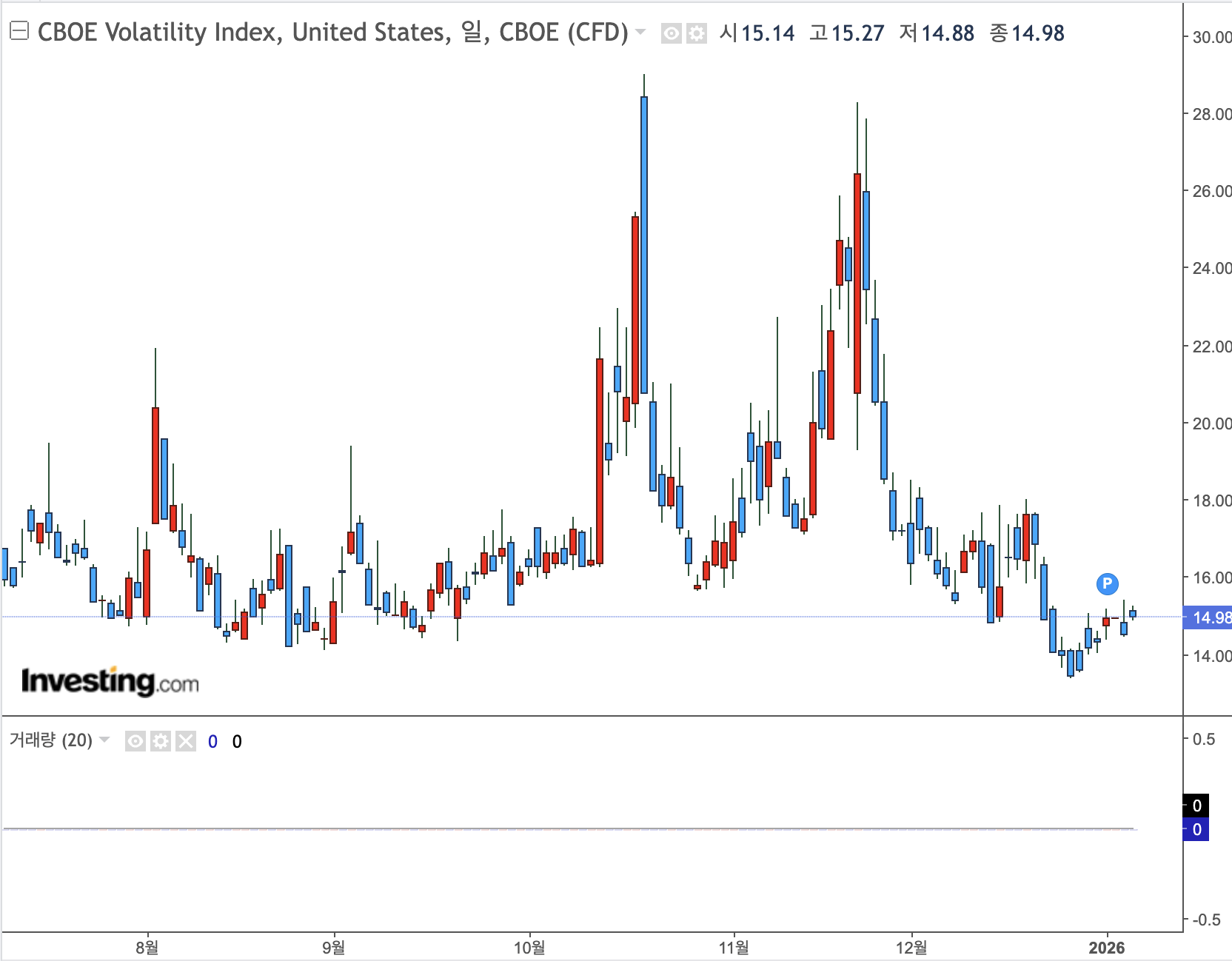 아직은 VIX 지수가 20 이하인 탐욕 구간
